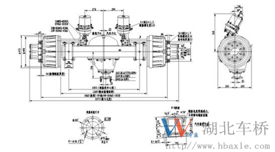 2401N122-010-4.11主減速器總成噪音低,傳遞扭矩大。其突緣端面至橋殼中心線距離為390mm(見如下安裝尺寸圖)。主從動(dòng)錐齒輪有噪音低、壽命長的特點(diǎn),其傳遞扭矩30000N.M,裝配成總成后噪音在84dB以下,壽命可達(dá)70萬次以上。