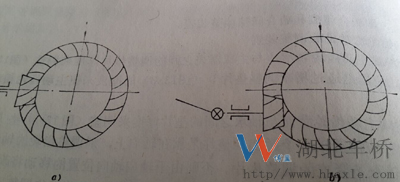 三種齒形橫斷面的齒廓在齒高方向都是漸開線齒形,其宏觀特征的主要區別是: 圓弧齒錐齒輪與等高齒錐齒輪,其主從動錐齒輪軸線都是相交的,二者不同的是沿齒長方向,前者由大端到小端是逐漸縮小的,而后者在全齒長上齒高是相等的(如圖a)。雙曲面齒輪的主要特征是主從動齒輪軸線不相交,主動齒輪低于從動齒輪一個距離,其主從動齒輪的螺旋角度大(如圖b)。雙曲面齒輪的最大優點是同時嚙合的齒數多,傳動平穩性好、強度大、噪音小;缺點是嚙合齒面滑動速度大,因而對潤滑油的要求高,必須使用專門的雙曲面齒輪油,且對調整精度要求高。另外因主從動齒輪的螺旋角大,工作時軸向力大,容易發生軸向串動。因此在實際生產過程中大多數使用前兩種主從動齒輪