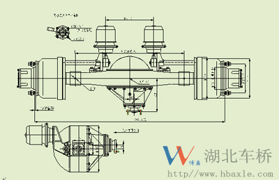 2402B104-0101-4.33主減速器總成,設(shè)計(jì)突緣端面至橋殼中心線距離為318mm(見如下安裝尺寸圖)。主、從動(dòng)錐齒輪是專門針對(duì)客車要求噪音低、壽命長等特點(diǎn),其傳遞扭矩18000N.M,裝配成總成后噪音在84dB以下,壽命可達(dá)70萬次以上,深受用戶的好評(píng)。
