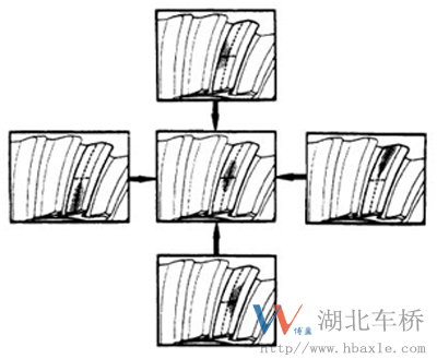 7)調整:a/c兩項通過增加或減少主動錐齒輪墊片2的方法進行調整;b/d兩項則通過調整齒輪的齒側間隙進行調整。